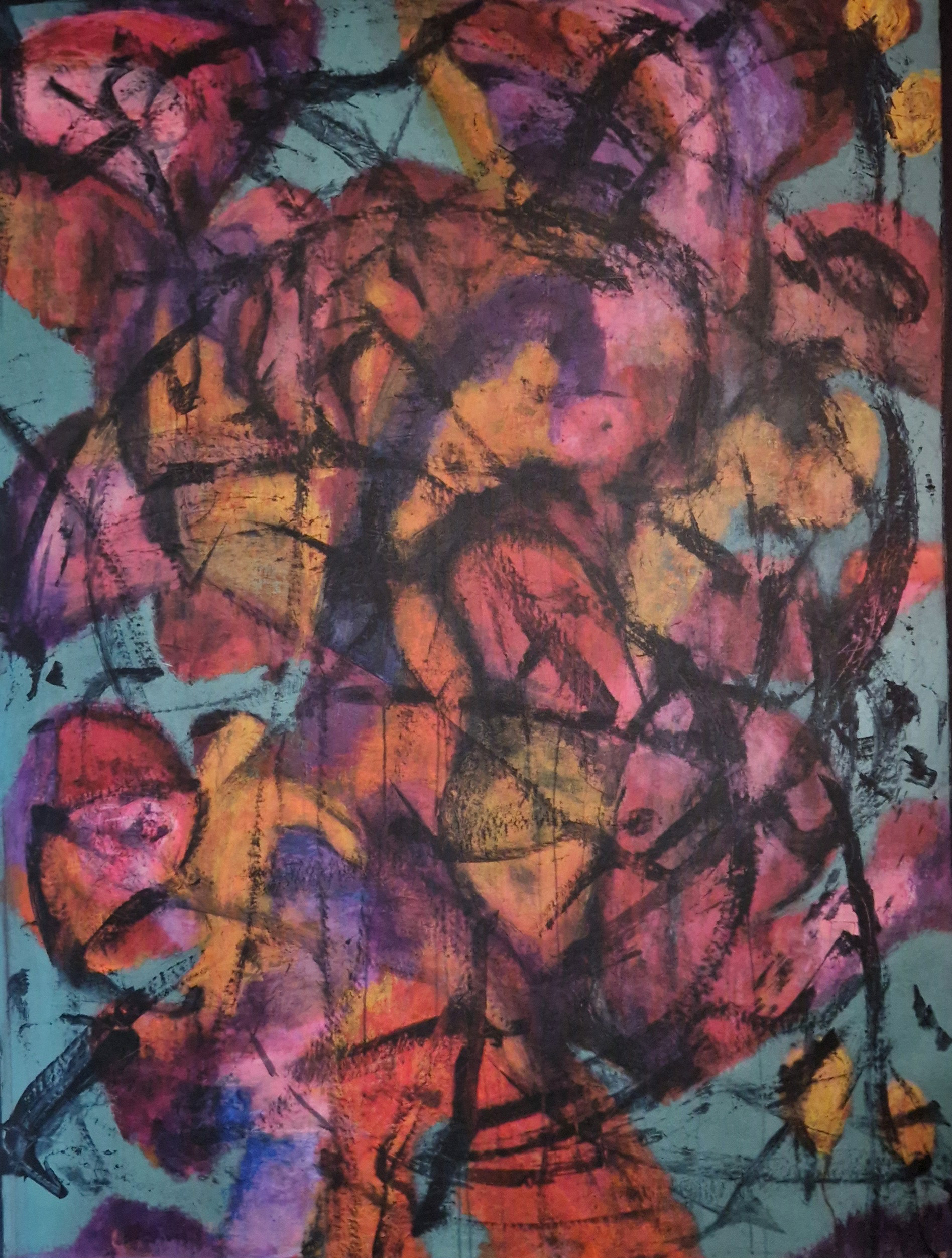 solgt 8300 kr. (incl. træramme)80x100 cm Akryl på lærred 2024 titel: Kaos